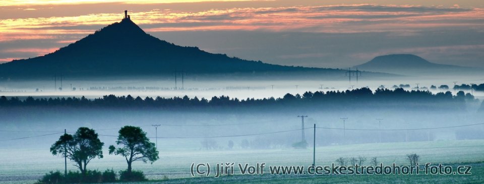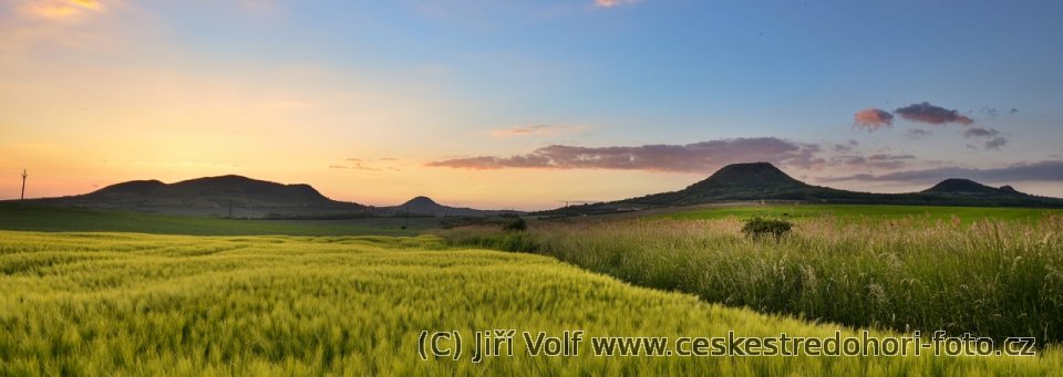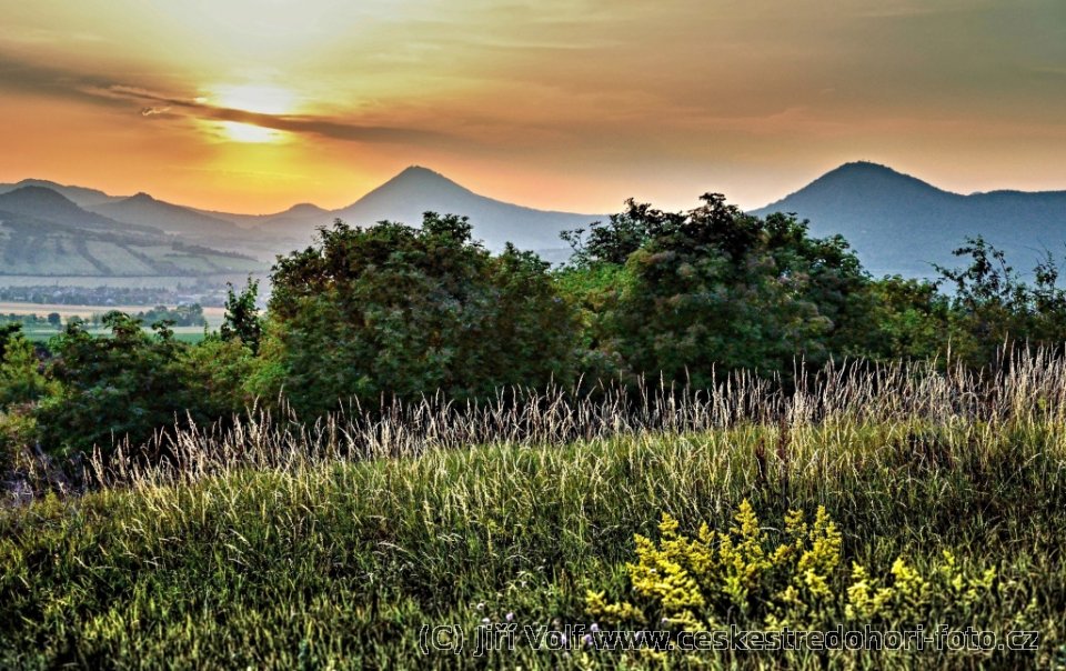 Lovoš a Milešovka při západu slunce