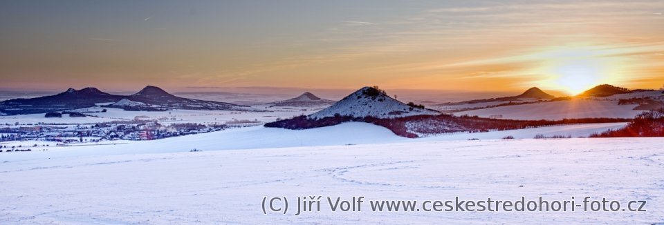 Zimní západ slunce v Lounském středohoří